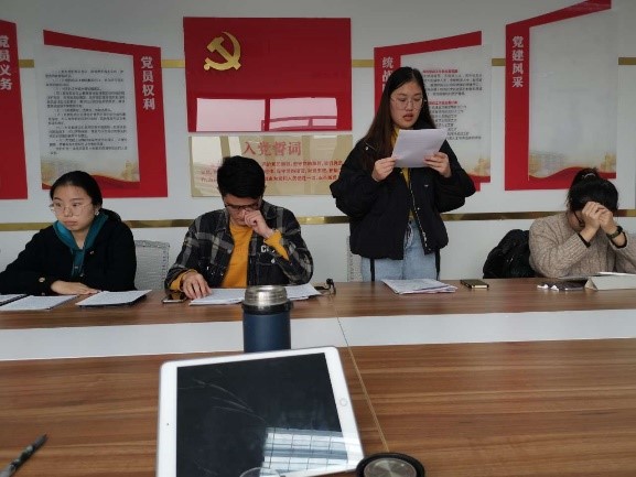 会议第一项,开展预备党员转正大会。预备党员巩倩、王家辉、虞莹等3名同志宣读了《预备党员转正申请书》。汇报了自己在转正期间思想、工作、学习情况及需向党组织说明的问题。入党介绍人介绍以上同志相关情况,表明了对于以上同志能否按期转正为正式党员的意见,并汇报其考察情况。与会党员发表意见,对以上3位同志能否入党进行了充分讨论,对其在预备期间的表现,肯定成绩,提出不足与希望。经无记名投票表决,同意其按期转为正式党员。