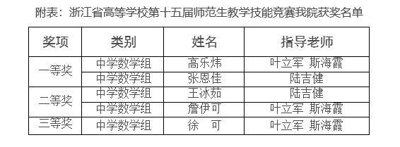 近日,浙江省大学生科技竞赛委员会成功举办浙江省高等学校第十五届师范生教学技能竞赛。我院获得一等奖2项、二等奖2项、三等奖1项的好成绩。