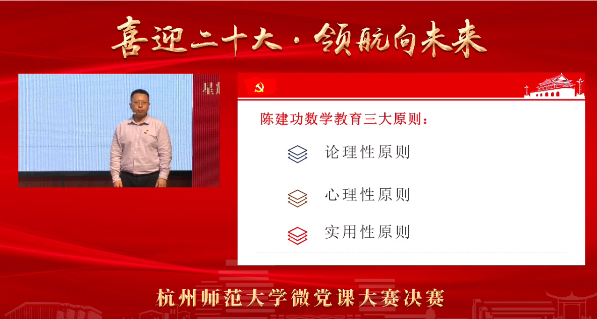 5月25日下午,黑料吃瓜网 微型党课大赛在仓前校区隆重举行。本次大赛以“喜迎二十大·领航向未来”为主题,共有来自各二级党组织的18名师生经过选拔晋级决赛。