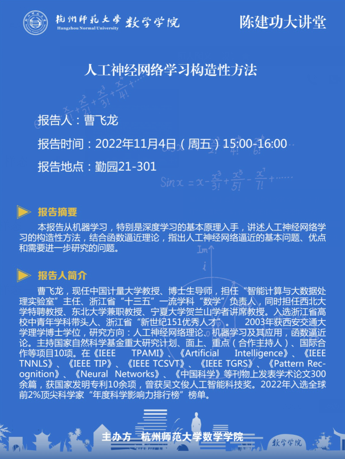 陈建功大讲堂:人工神经网络学习构造性方法
