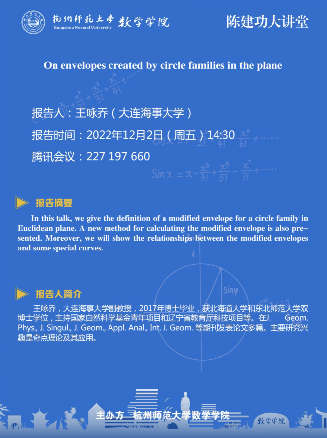 陈建功大讲堂:On envelopes created by circle families in the plane