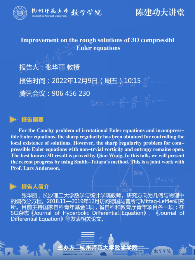 陈建功大讲堂:Improvement on the rough solutions of 3D compressible Euler equations