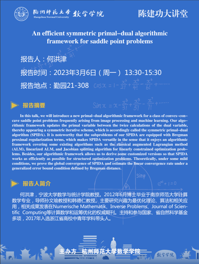 陈建功大讲堂:An efficient symmetric primal-dual algorithmic framework for saddle point problems