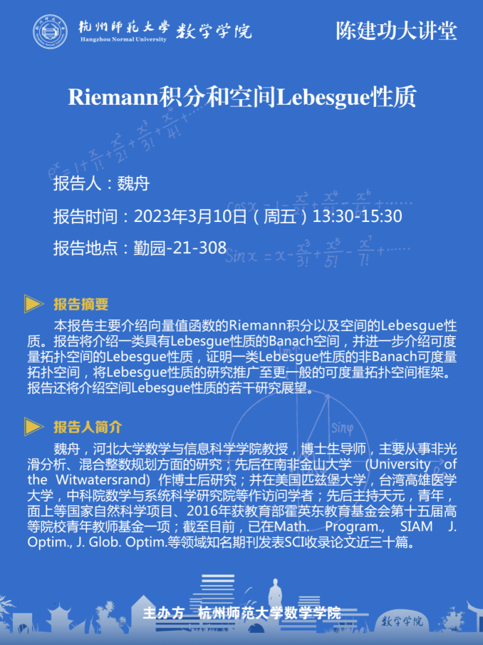 陈建功大讲堂:Riemann积分和空间Lebesgue性质