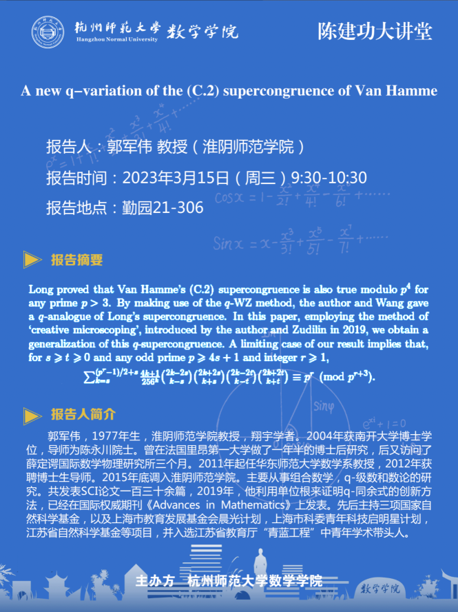 陈建功大讲堂;A new q-variation of the (C.2) supercongruence of Van Hamme