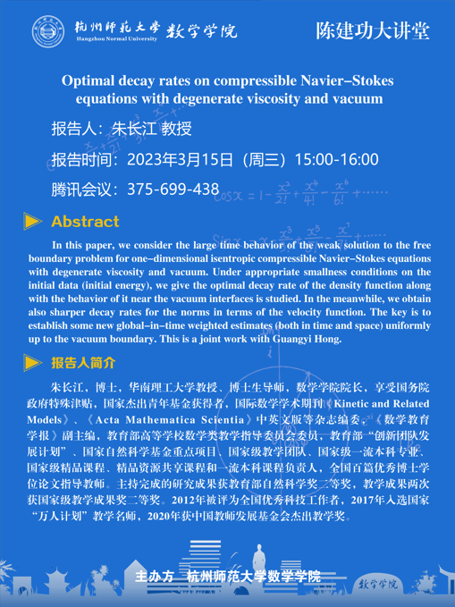 陈建功大讲堂: Optimal decay rates on compressible Navier-Stokes equations with degenerate viscosity and vacuum
