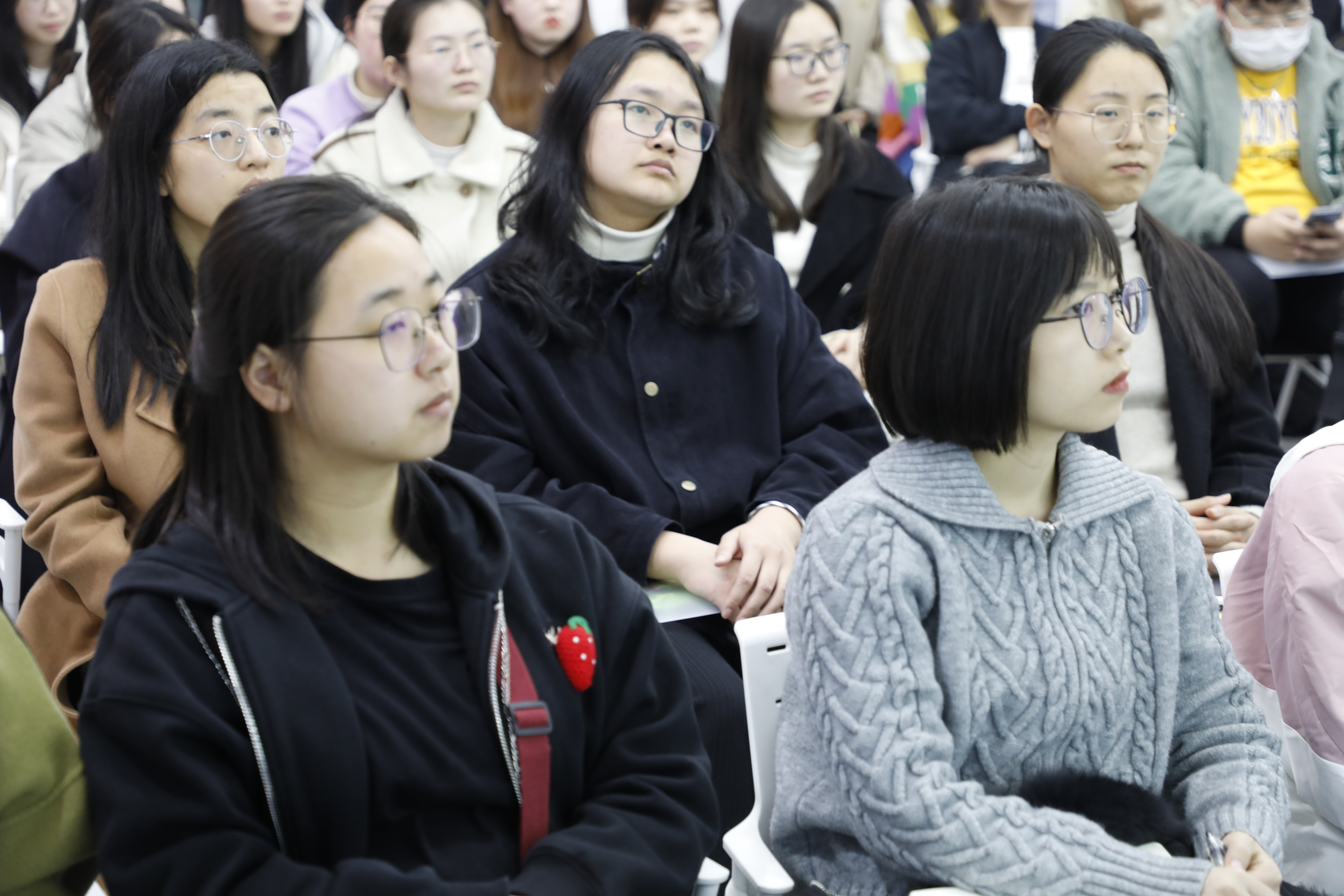 参观办公环境后,由校友作为分享嘉宾向现场师生分享了其在该企业的成长经历。企业相关负责人也就新东方的发展历程、业务板块和相关整体情况作了介绍,尤其经历双减政策后的业务调整,吸引了在场师生的广泛兴趣。同时也介绍了企业方招聘的门槛和需求。