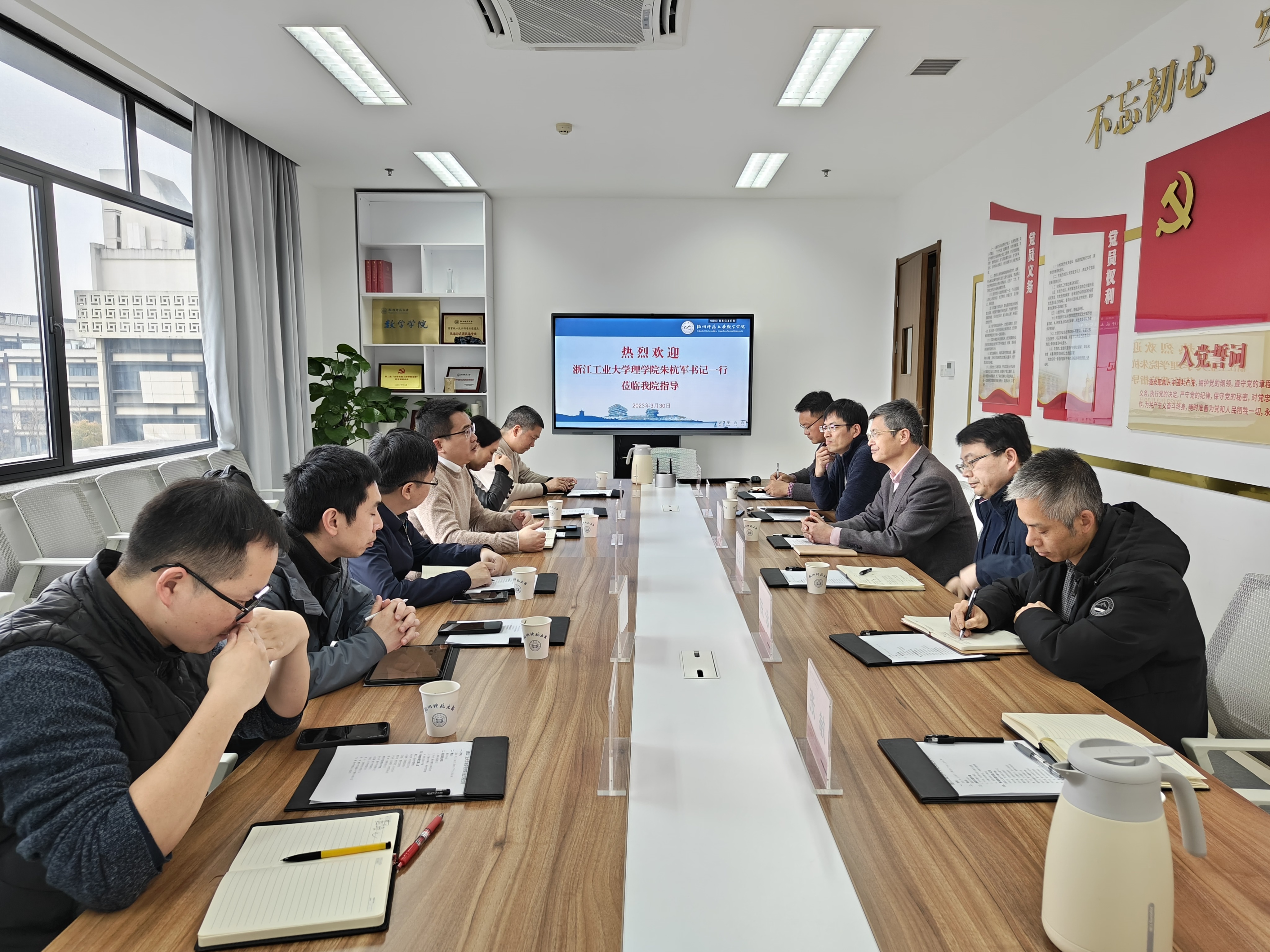 3月30日,浙江工业大学理学院党委书记朱杭军一行来我院开展调研。院党委书记徐金芳、教学副院长虞旦盛、科研副院长何济位、数学系系主任陈泳、数科系系主任曹健等参加座谈交流会。