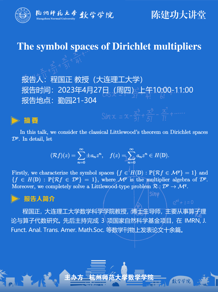陈建功大讲堂:The symbol spaces of Dirichlet multipliers