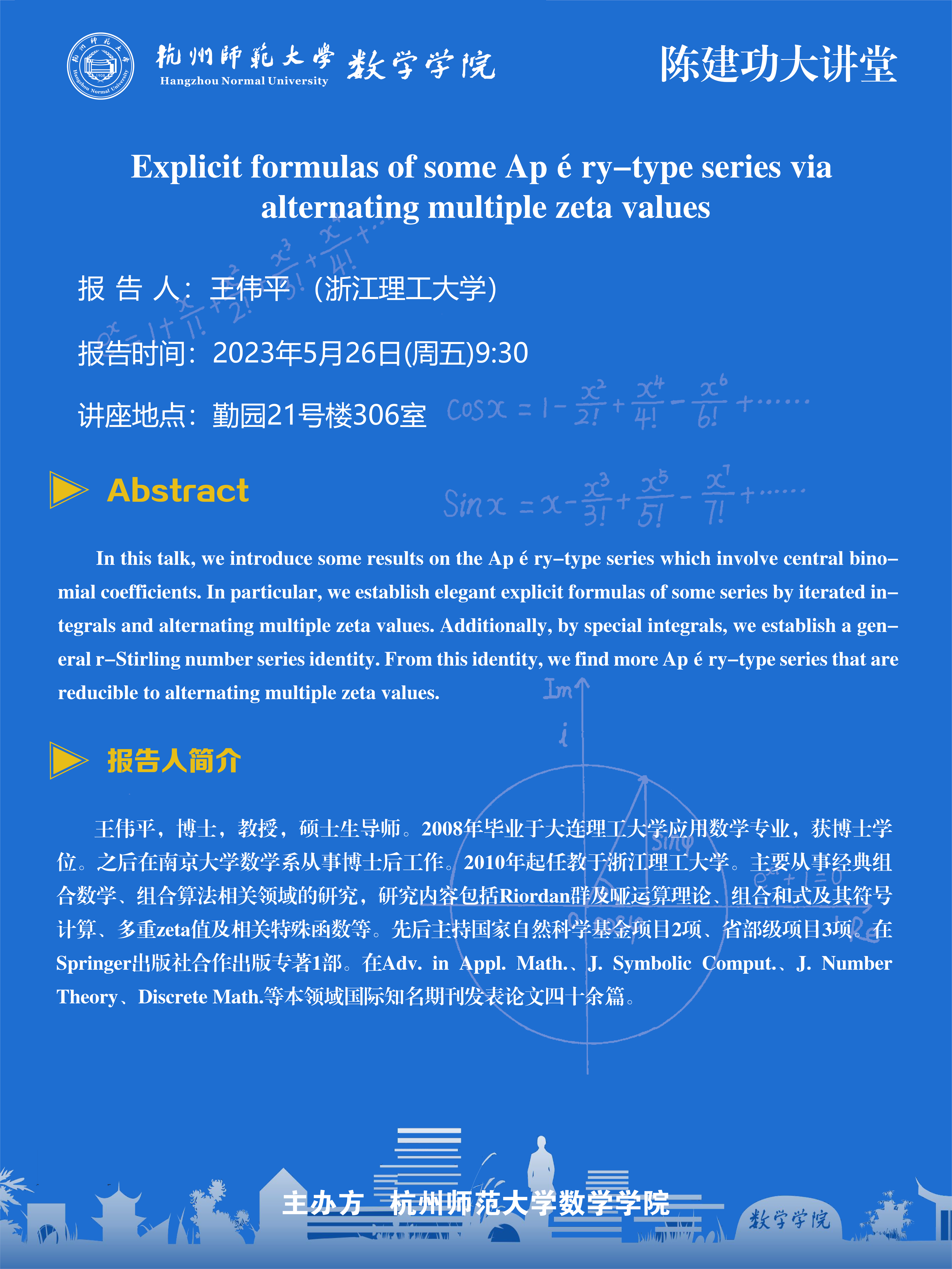 陈建功大讲堂:Explicit formulas of some Apéry-type series via alternating multiple zeta values