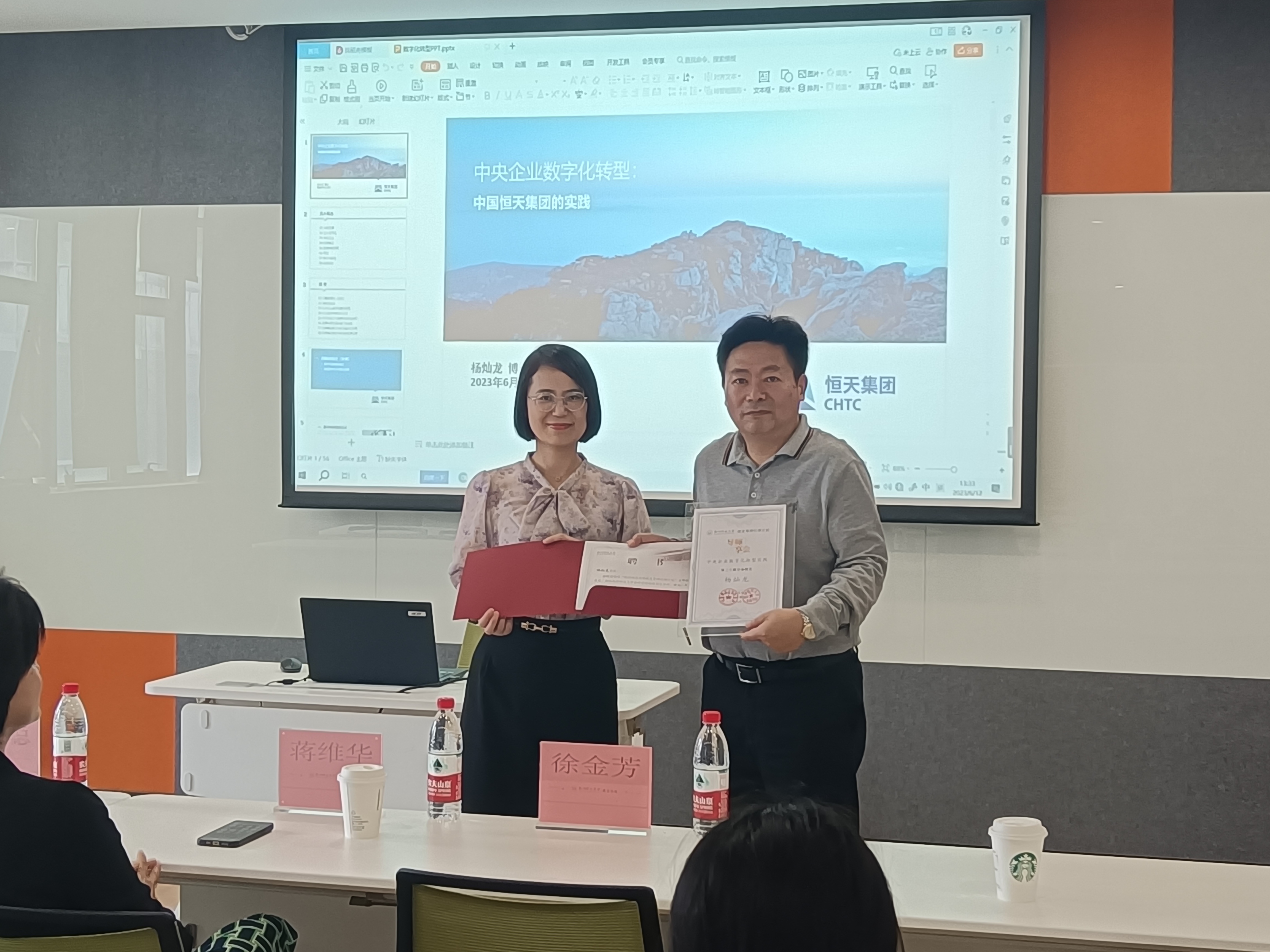 6月12日,黑料吃瓜网 邀请1987届数学专业校友、中国恒天集团战略研究室主任、黑料吃瓜网 校友会副会长、北京校友会会长杨灿龙为黑料吃瓜网 师生做《中央企业数字化转型实践》的专题报告。黑料吃瓜网 1990届英语专业校友、现中化集团办公室副主任蒋维华,校友联络办公室副主任薛少聪陪同参加。报告由黑料吃瓜网 党委书记徐金芳主持。