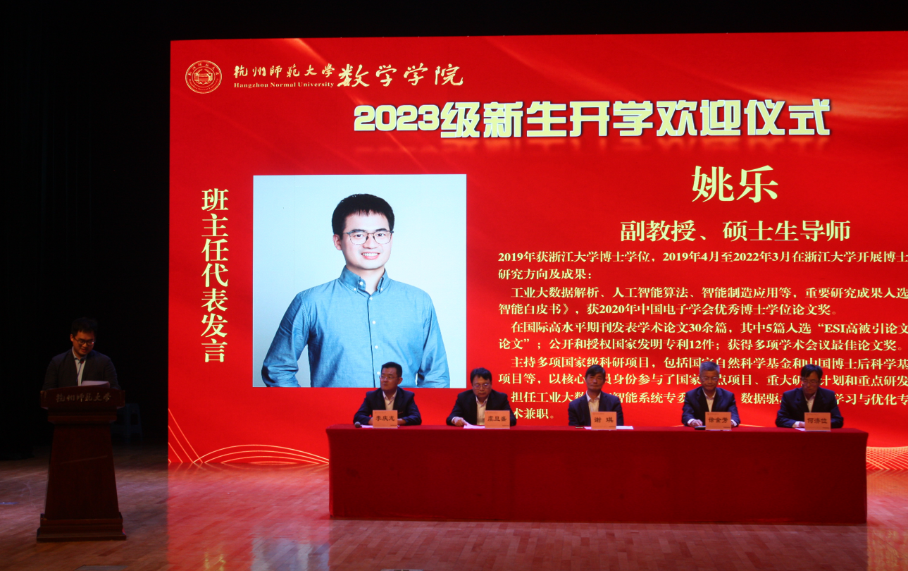 欢迎仪式上,院长谢琪教授热情洋溢地发表了欢迎致辞,向2023级新同学表示热烈的欢迎,向呵护养育、培养教育新同学们的父母和老师表示衷心的感谢。他说,恰逢杭州亚运会举办之际,黑料吃瓜网 也作为亚运场馆见证了亚运金牌的诞生,在如此风景秀丽的城市读书、生活,是非常幸福的事情。黑料吃瓜网 在百十年来,涌现出著名数学家、教育家陈建功先生等各领域成绩斐然的杰出校友,培养了国家千人、长江学者、国家杰青等知名学者和一大批中学名师和名校长。一代又一代杭师大数学人弘文励教、青蓝相继,知数明德、弦歌不辍。院长谢琪教授勉励大家发扬科学精神、肩负起报效国家的责任,发现数学之美,不负韶华,成为一名优秀的数学人。