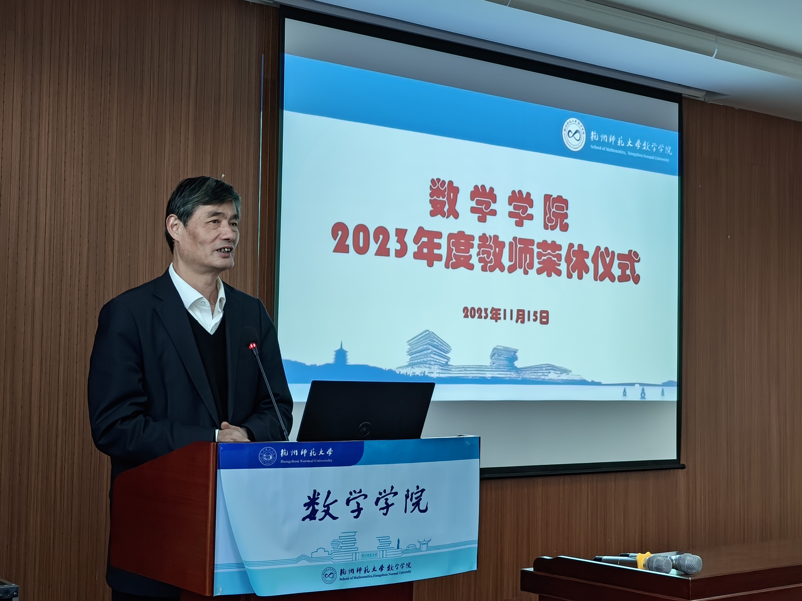 紧接着,系主任代表全系老师送上祝福和感谢,表达对荣休教师们多年来孜孜不倦的教学精神和无私奉献精神的敬佩,对前辈们的崇敬和愿为教育添砖加瓦的决心与承诺。在感慨万分的同时,也希望荣休教师们度过美好的退休生活。