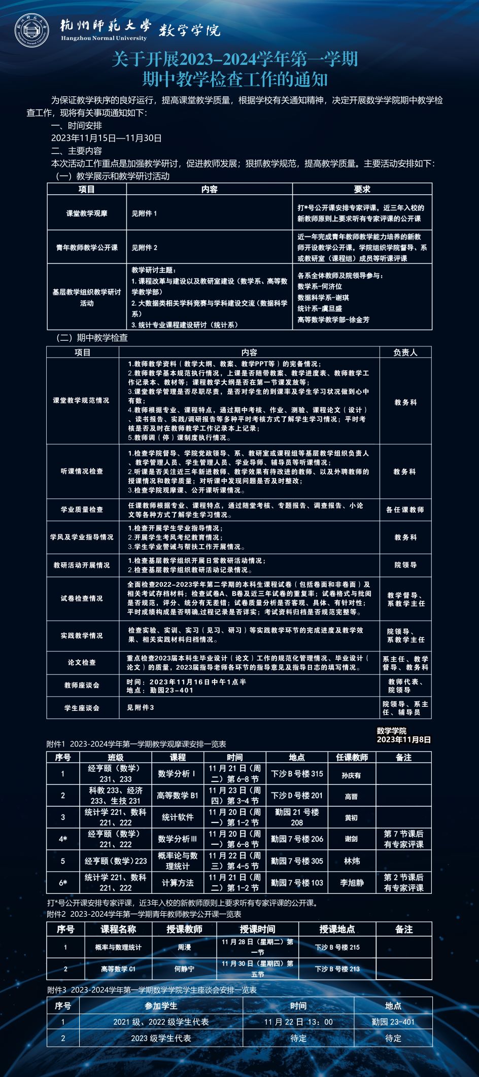 黑料吃瓜网 2023-2024学年第一学期期中教学检查安排