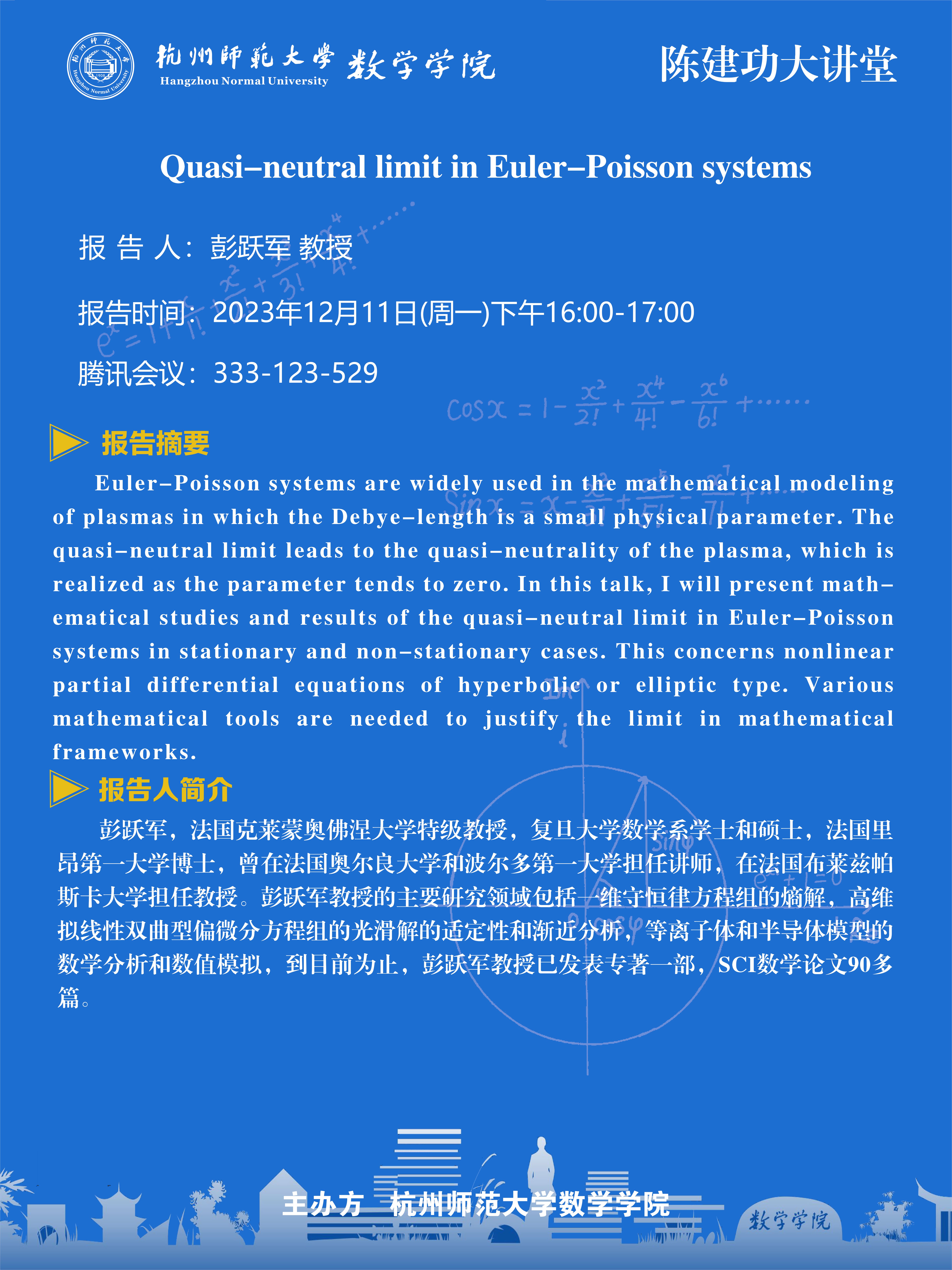 陈建功大讲堂:Quasi-neutral limit in Euler-Poisson systems