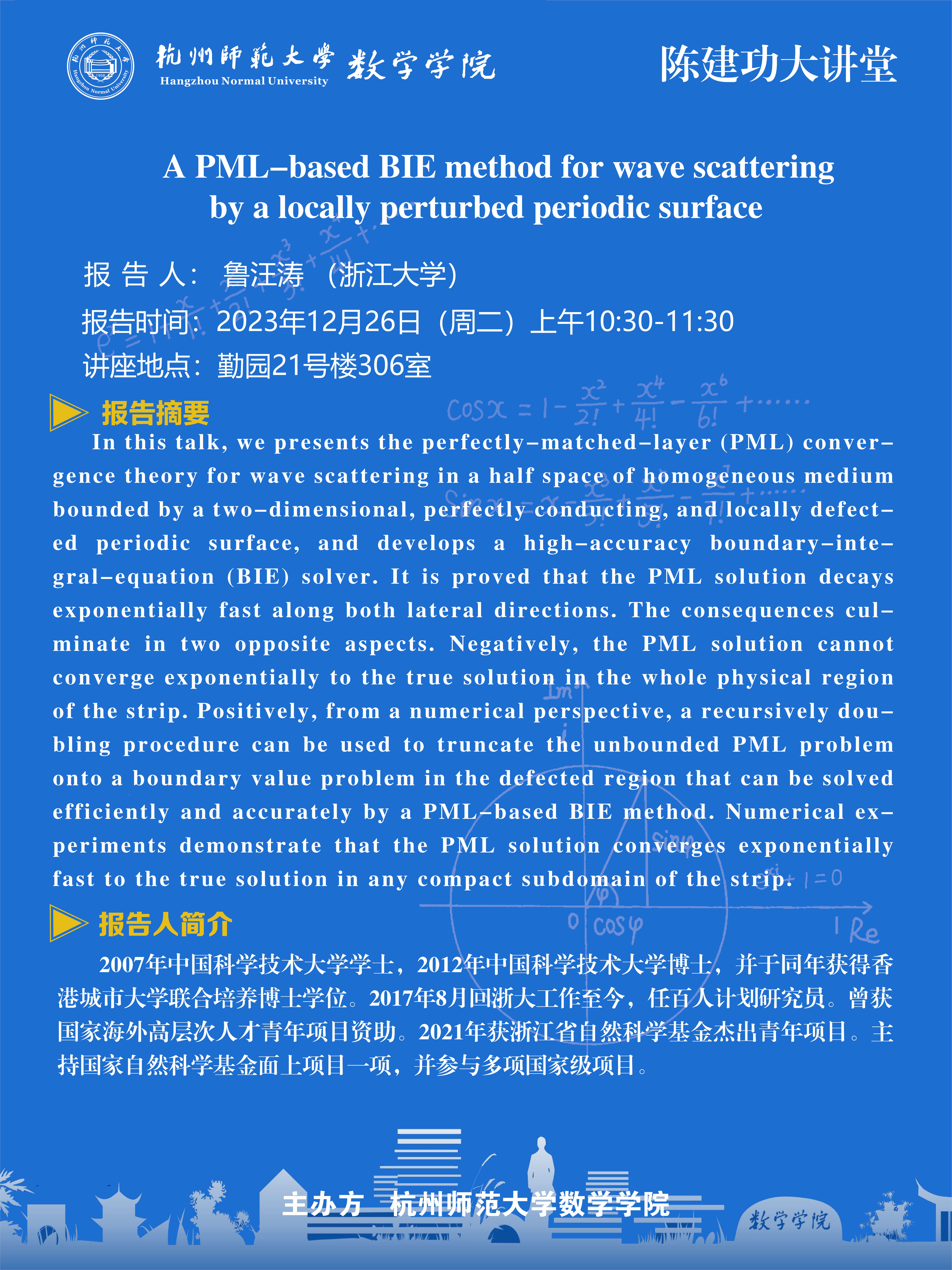 陈建功大讲堂:A PML-based BIE method for wave scattering by a locally perturbed periodic surface