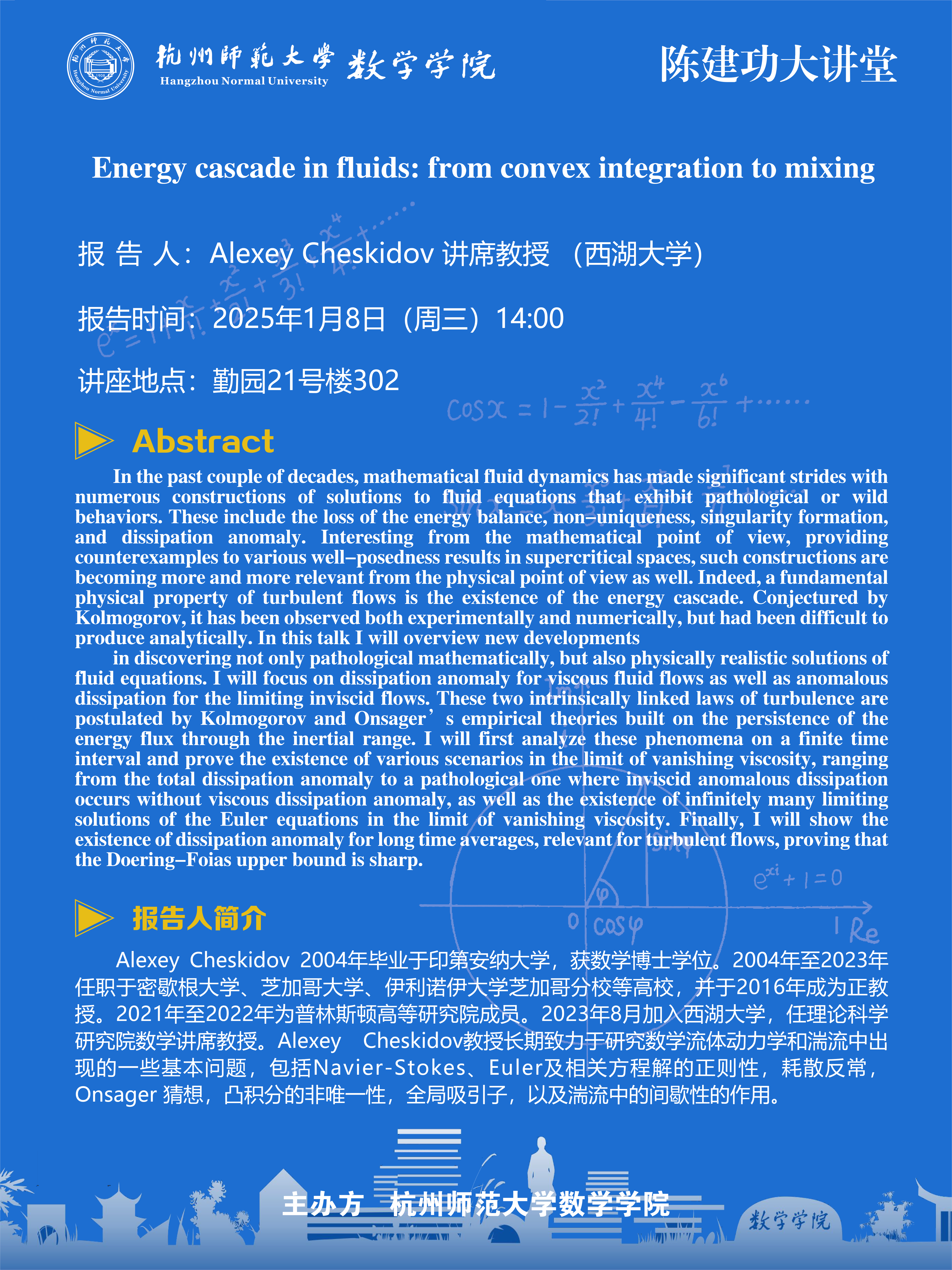 陈建功大讲堂(2025-2): Energy cascade in fluids: from convex integration to mixing