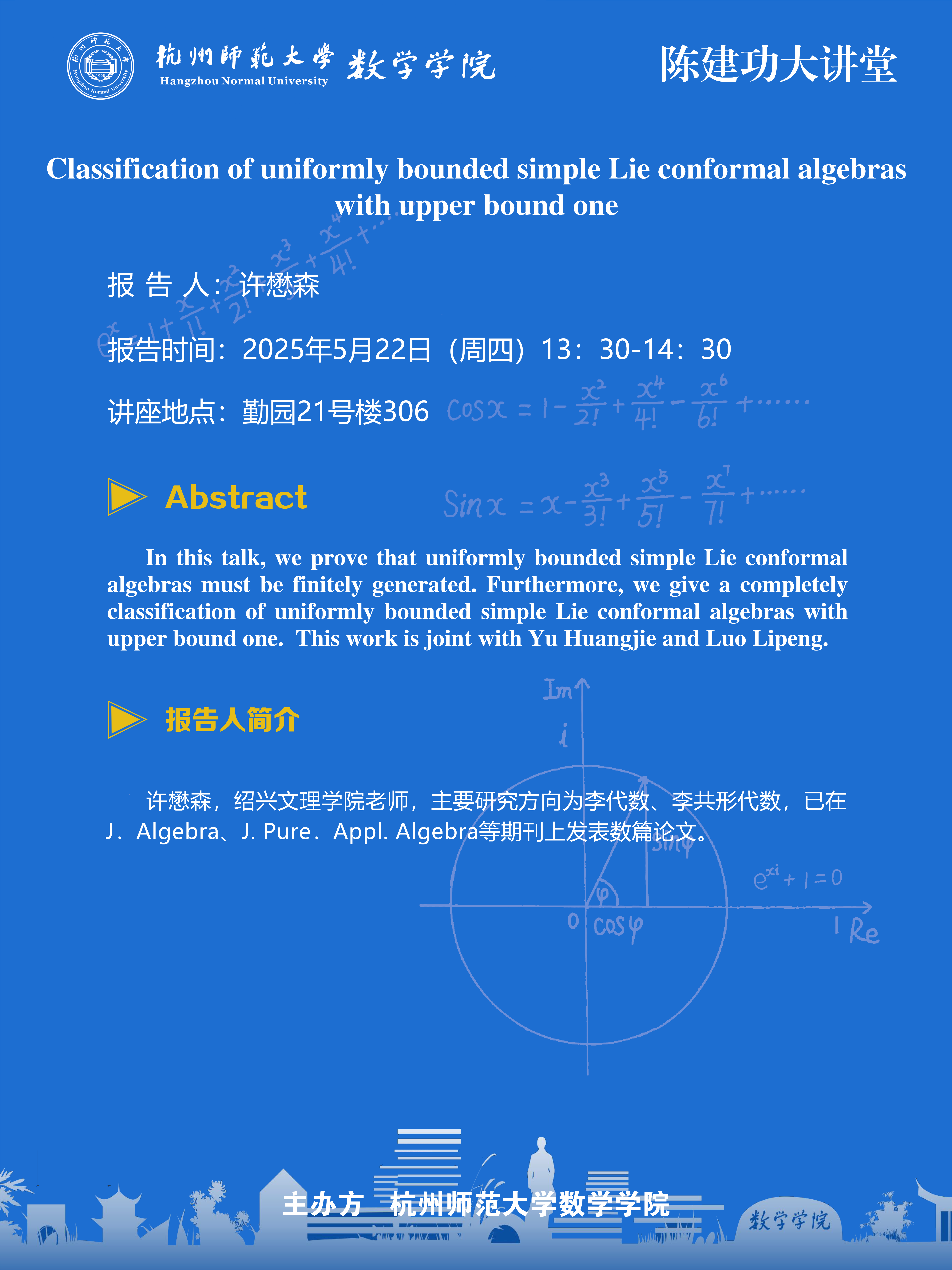陈建功大讲堂(2025-40):Classification of uniformly bounded simple Lie conformal algebras with upper bound one