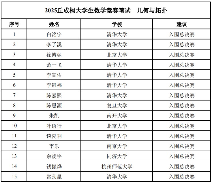 经过两天的激烈角逐,我院2022级建功班钱振烨同学成功闯入“几何与拓扑”方向总决赛,该方向仅有15人获得入围总决赛资格,其中清华8人、北大2人、复旦1人、南开1人、南大1人、同济1人,均是老牌985数学强校,这也是我院学子第一次入围“丘赛”总决赛。同时,2021级郑朝城同学荣获“代数、数论与组合”方向笔试阶段优胜奖,2022级建功班和2021级学生组成的团队(包括:钱振烨、李福汉、王嘉海、郑朝城、胡芷境、吴一昊),荣获团体赛笔试阶段优胜奖,黑料吃瓜网 是19个获得入围资格或优胜奖的高校中唯一“双非”大学。