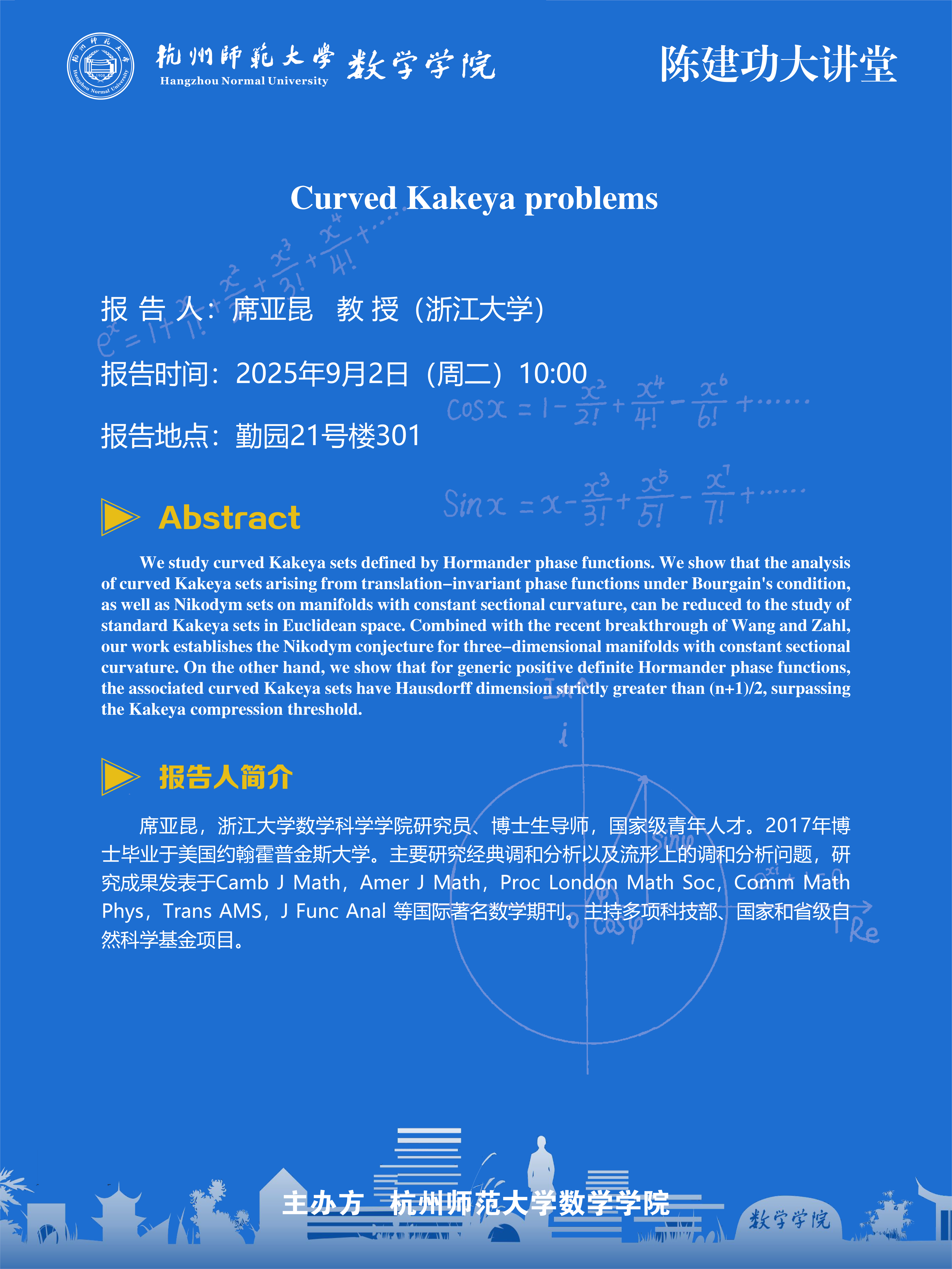 陈建功大讲堂(2025-60):Curved Kakeya problems