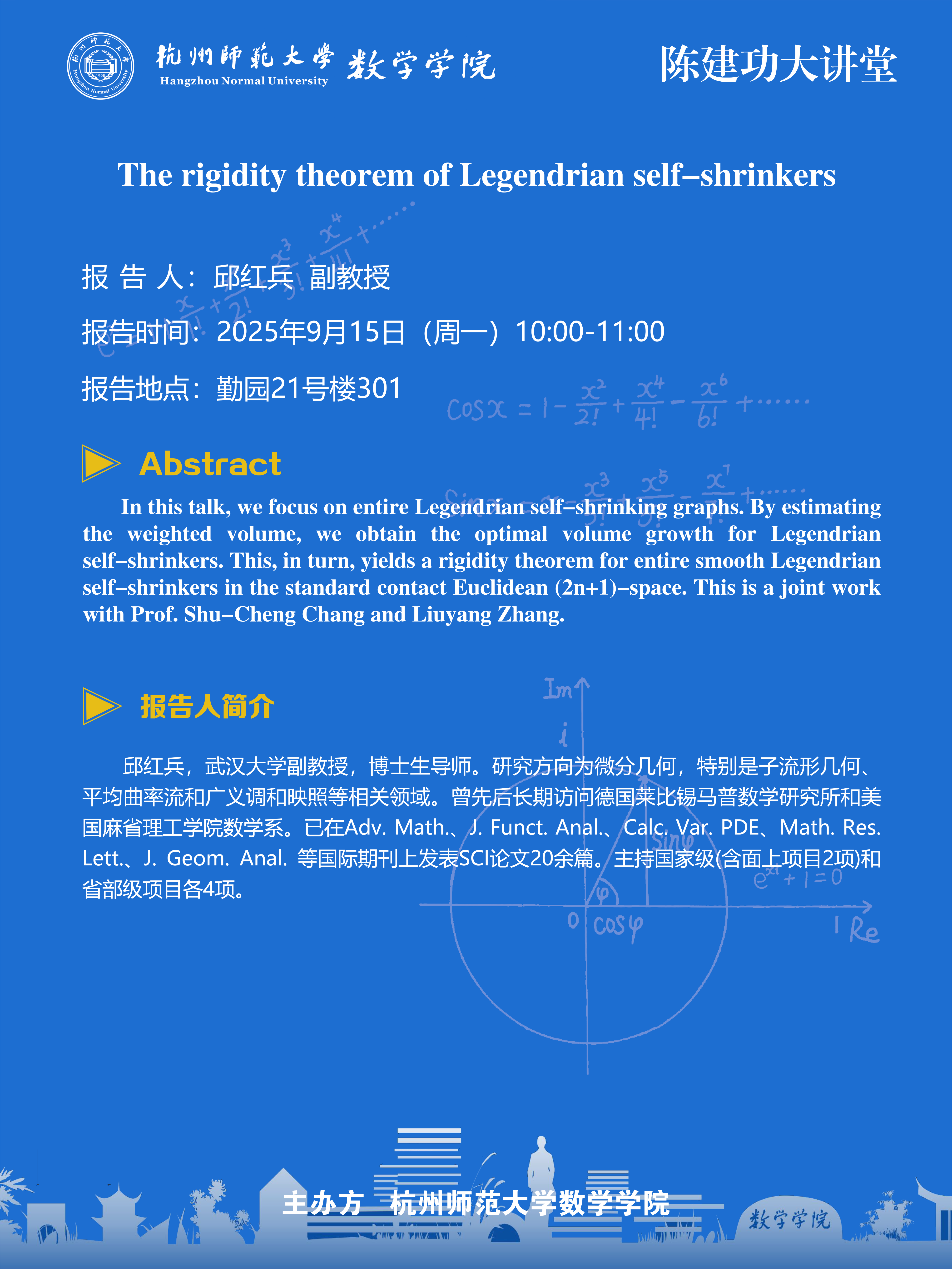 陈建功大讲堂(2025-63):The rigidity theorem of Legendrian self-shrinkers