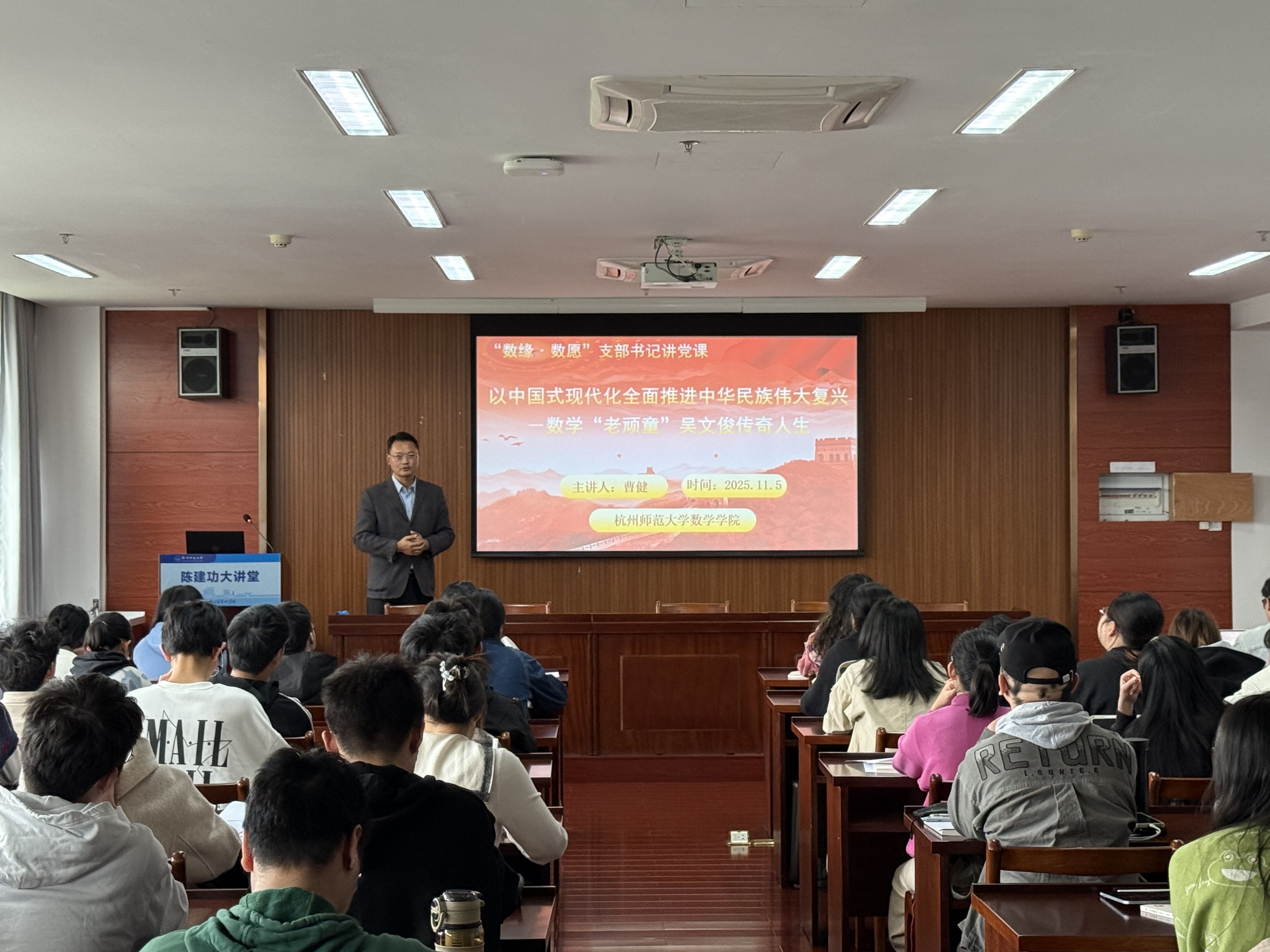 本次党课,曹健教授沿着数学家吴文俊先生的人生轨迹,从数学之路的启航、国际舞台上的崛起、复兴中国数学的征程、爱数学的“老顽童”形象和吴文俊精神的传承五个维度,讲述了吴文俊先生的传奇故事。从物理尖子生受恩师点拨转向数学领域,到师从陈省身先生深耕拓扑学,37岁斩获首届国家自然科学奖一等奖;从花甲之年开拓数学机械化新领域,成为首届国家最高科学技术奖得主,到发掘中国古代数学智慧,吴文俊先生始终将个人学术追求融入国家发展大局,用一生践行了“科研报国”的初心使命。在讲述过程中,曹健教授强调吴文俊先生身上体现的自主创新、艰苦奋斗与习近平总书记所提及的“勇担重任,勇攀高峰,当好建设世界科技强国的排头兵”高度契合,提醒我们时刻做到心怀远大理想,以更好的小我建设“大我”。