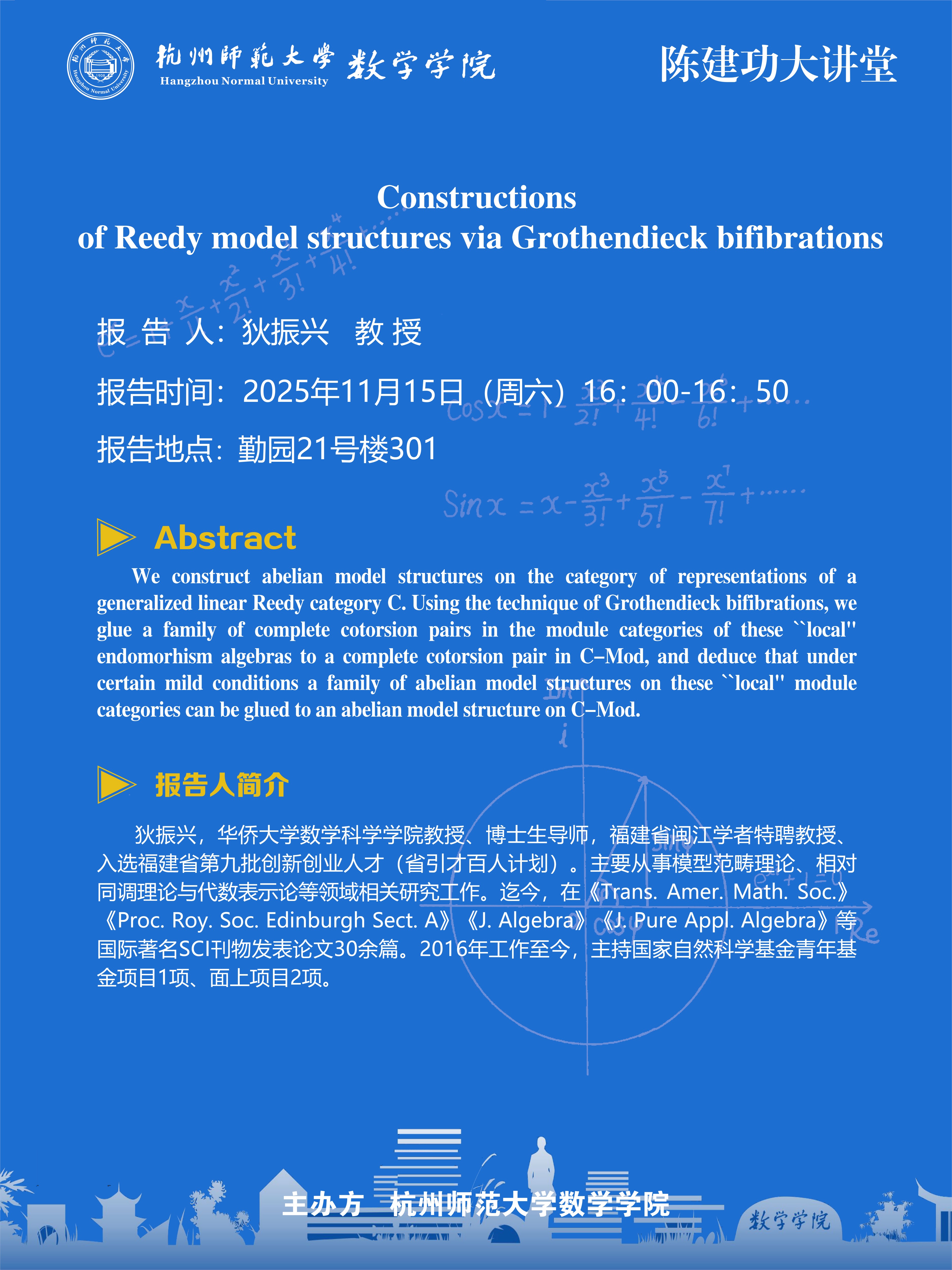 陈建功大讲堂(2025-127):Constructions of Reedy model structures via Grothendieck bifibrations