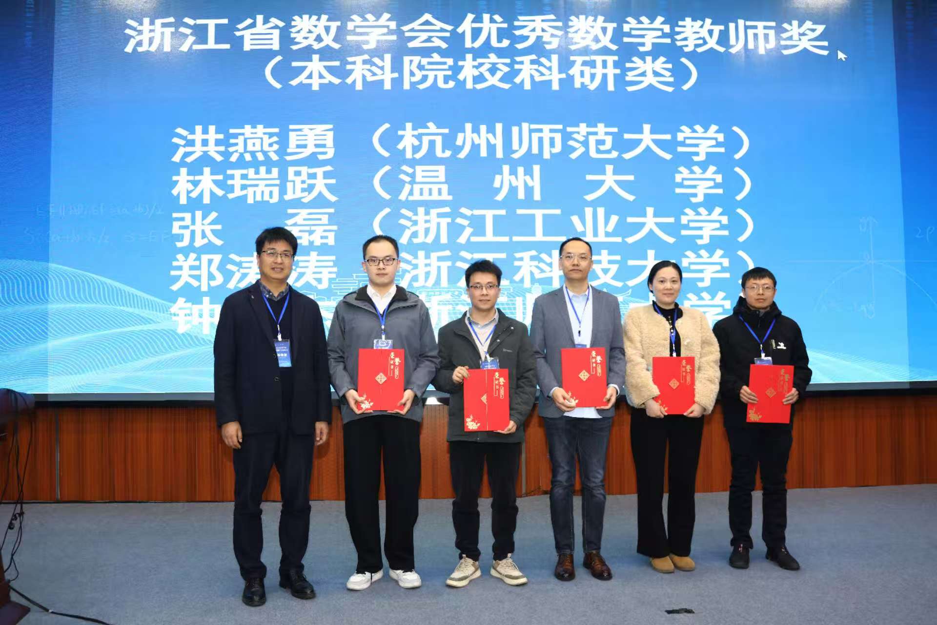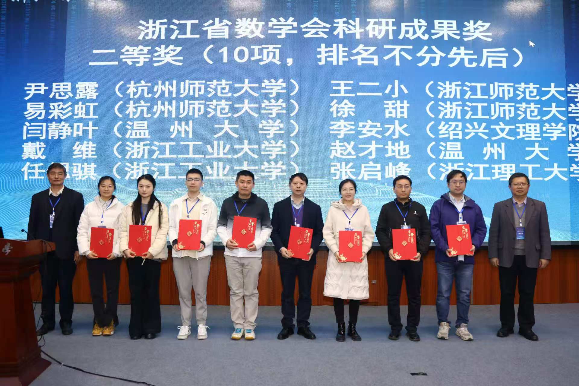随后,大会举行了浙江省数学会科研成果奖和优秀数学教师奖颁奖仪式。数学会副理事长、浙江大学盛为民教授宣读浙江省数学会优秀数学教师奖名单,数学会副理事长、浙江师范大学院长杨敏波教授为获奖者颁奖。数学会副理事长、宁波大学屈长征教授宣读浙江省数学会科研成果奖名单,数学会副理事长盛为民教授、杭师大黑料吃瓜网 院长谢琪教授为获得浙江省数学会科研成果二等奖的颁奖,数学会理事长包刚院士、杭师大应悦纪委书记为获得浙江省数学会科研成果一等奖的颁奖。我院洪燕勇教授获得优秀教师奖,苏一鸣教授获得科研成果一等奖,尹思露、易彩红获得科研成果二等奖。奖仪式由浙江省数学会秘书长、浙江大学徐翔教授主持。