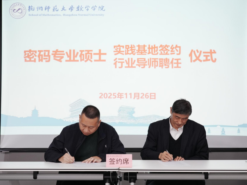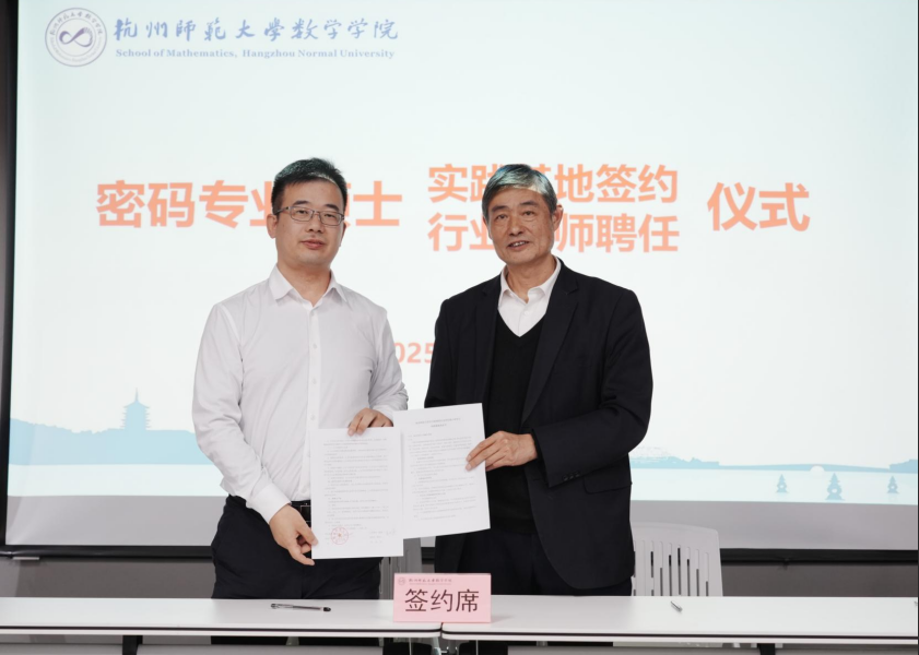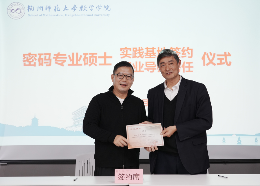 11月26日,为进一步夯实我院密码专业硕士点建设基石,深度推进产教融合发展,学院隆重举行“密码专硕实践基地签约与行业导师聘任仪式”。此次活动不仅标志着学院在密码专业人才培养模式上迈出了创新步伐,更为学院与行业间的紧密合作搭建了坚实桥梁。学院党委书记徐金芳、副院长何济位出席,党委副书记李庆龙主持仪式,密码团队教师及密码专硕研究生等共同参加活动。